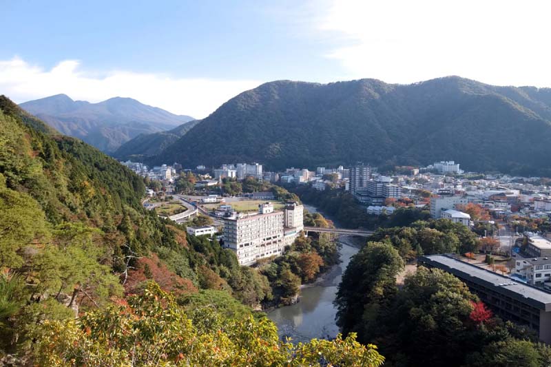 Situata a circa due ore a nord di Tokyo, questa locslità è famosa per le sue sorgenti termali immerse tra paesaggi mozzafiato di valli lussureggianti e gole panoramiche sul fiume Kinugawa.